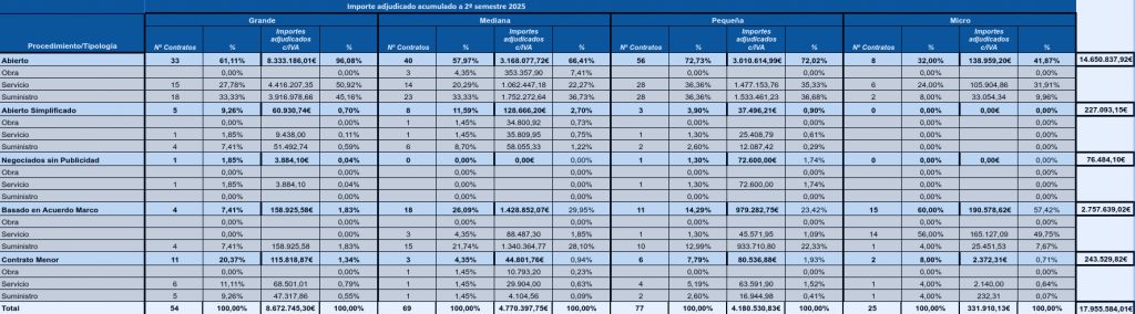 A continuación, te detallamos los contratos adjudicados a través de cada uno de los distintos procedimientos previstos en la legislación sobre contratos del sector público.